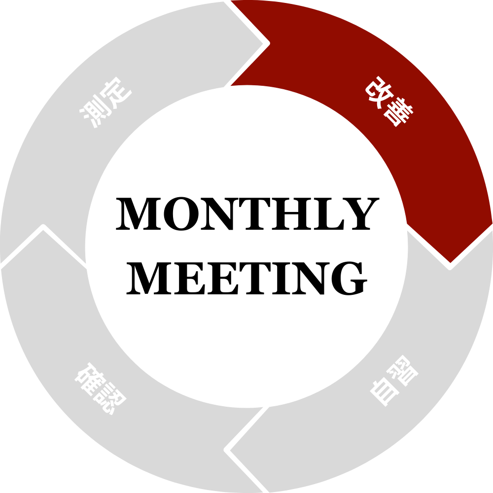 ひと月の学習とテストをもとにフィードバックを行います。その内容をその後の取り組み方に反映し、学習を改善していきます。