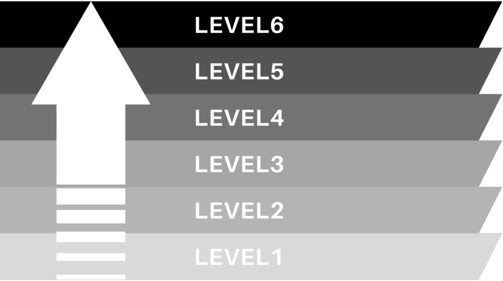 各レベルで学習を積み重ね、最終レベルであるレベル6の終了時にテストを実施します。このテストをクリアすることで、プログラム修了となります。