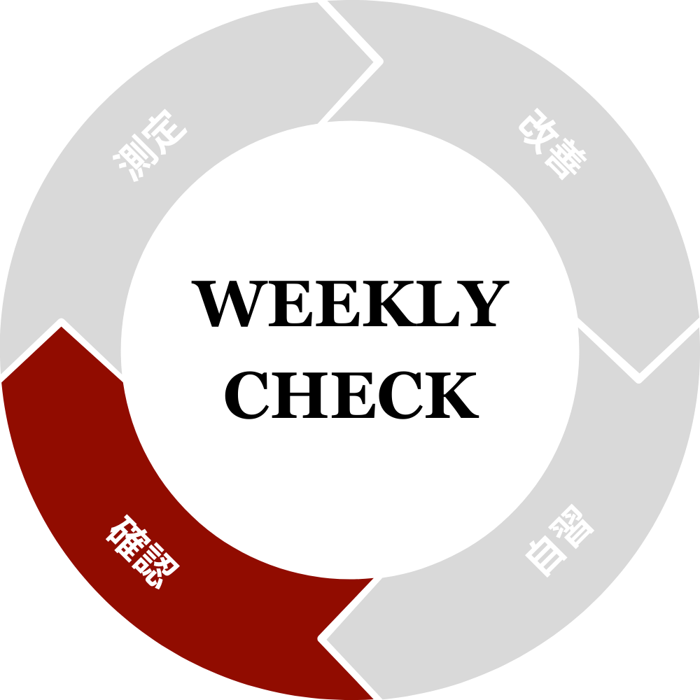 自己学習で取り組んだ内容が、正しく身についているかを毎週確認します。この確認によって、学習を継続する習慣を定着させます。